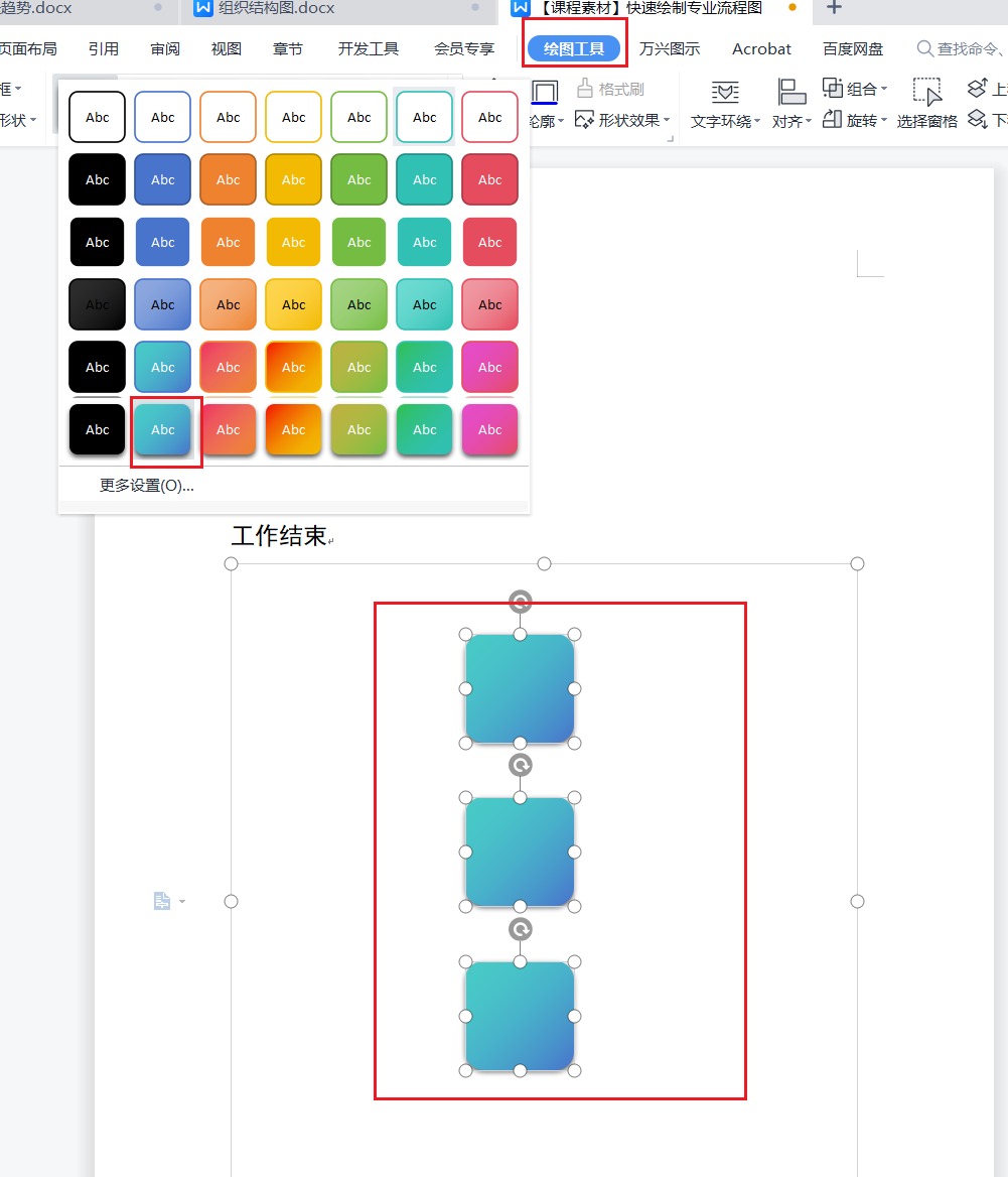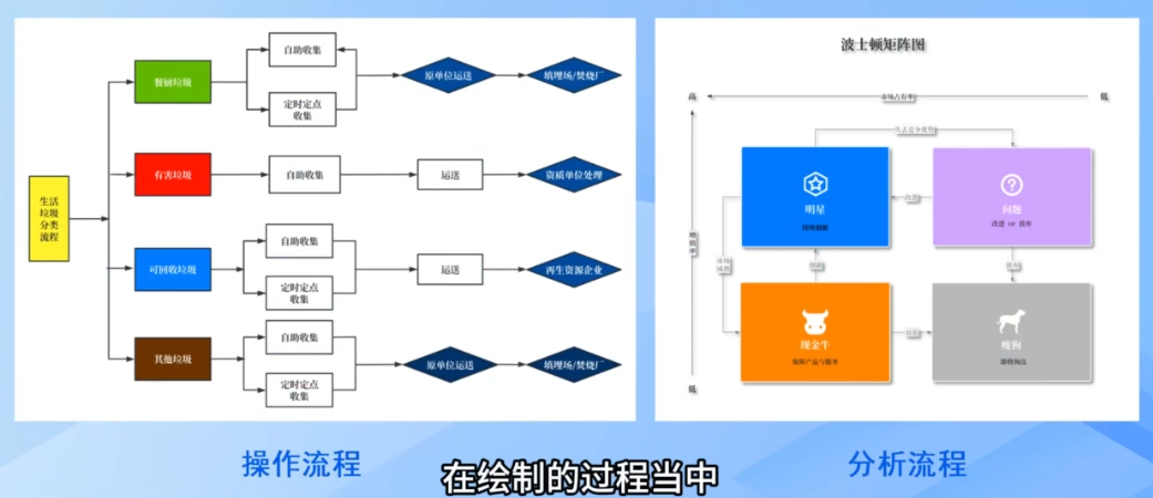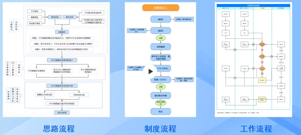 当需要在文档中制作画面描述一项工作的流程和安排时,使用绘图画布功能可以快速绘制流程图。