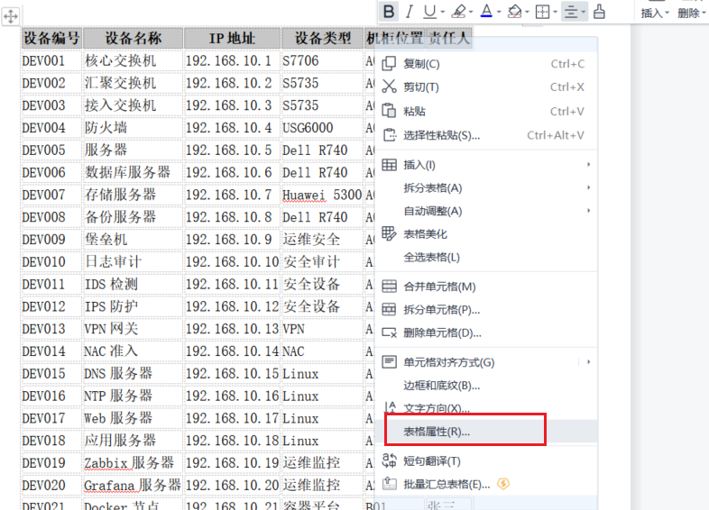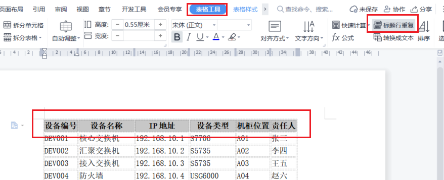 在日常办公中,我们经常会在 WPS Office 的 WPS Writer 文档中插入较长的表格,例如设备清单、服务器资产台账、项目管理列表、网络设备信息表等。当表格内容较多跨越多页时,如果每一页没有表头,就会导致阅读困难。
