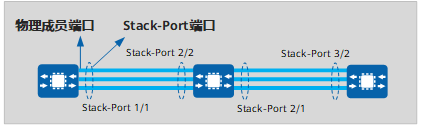 每台设备支持两个Stack-Port端口,为Stack-Port n/1和Stack-Port n/2,其中n为设备的堆叠ID。