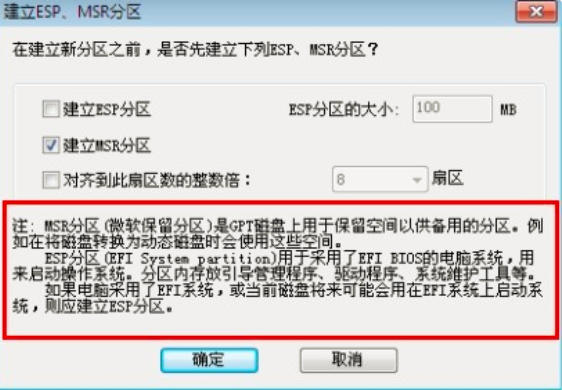 安装 Windows 到 GPT 磁盘时,系统会自动创建 MSR 分区。