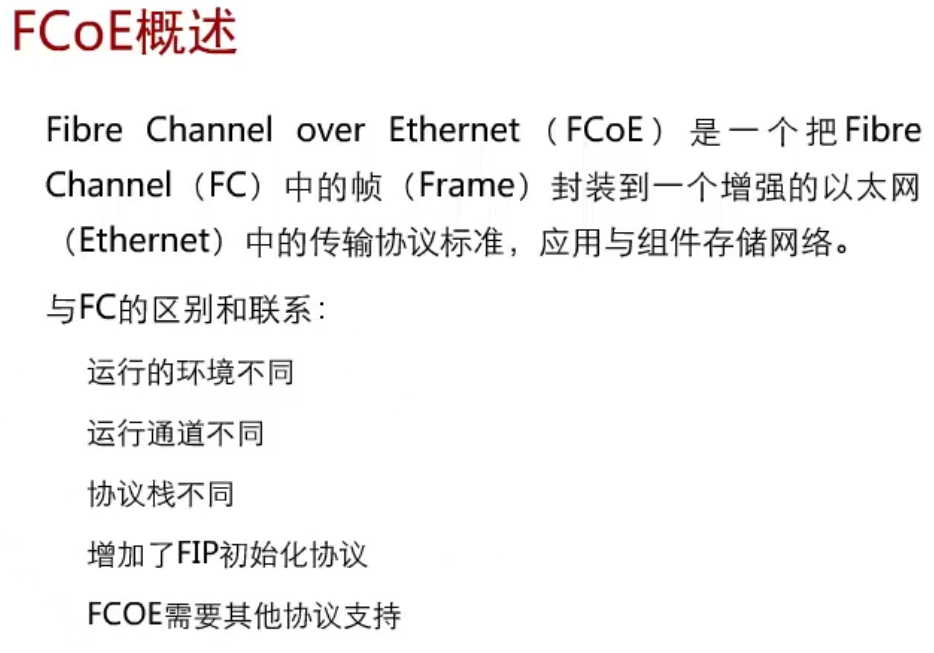 在以太网网络上 原生封装并传输 Fibre Channel 帧,实现 LAN 与 SAN 的 融合与统一,既保留 FC 的高性能与可靠性,又利用以太网的通用性与低成本。 (TechTarget)