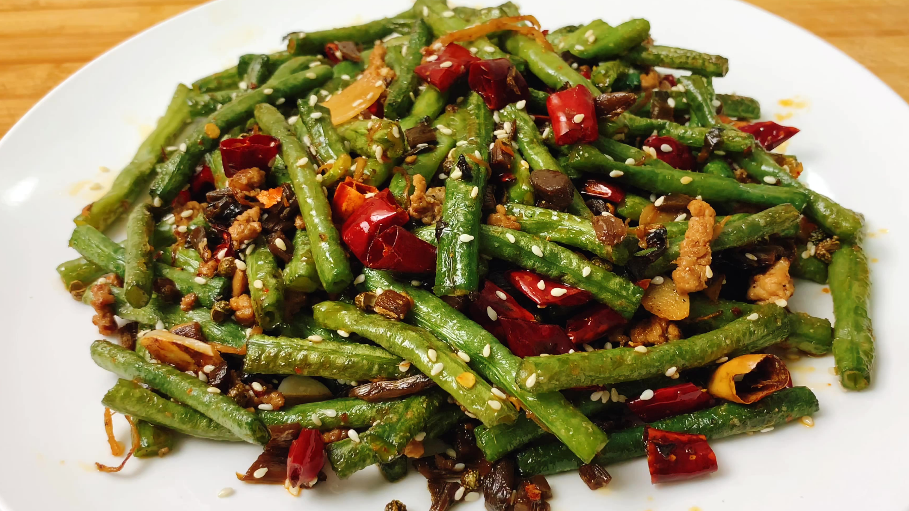 家常版油多不香,饭店版香但焦;而真正的酒店级干煸豆角,讲究的是——干而不柴、香而不糊、辣而不燥、咸鲜回甜、豆香四溢。