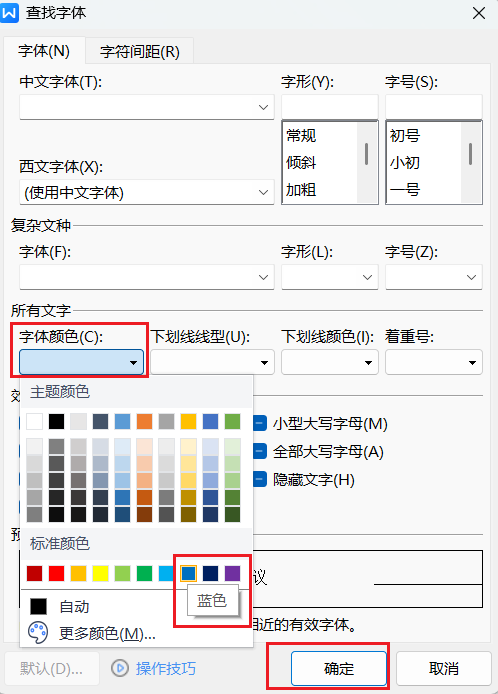 字体颜色选择标准色蓝色