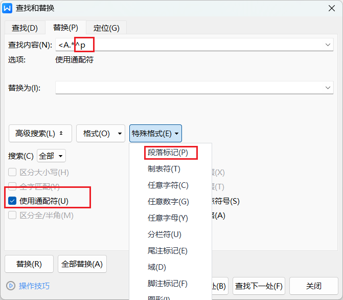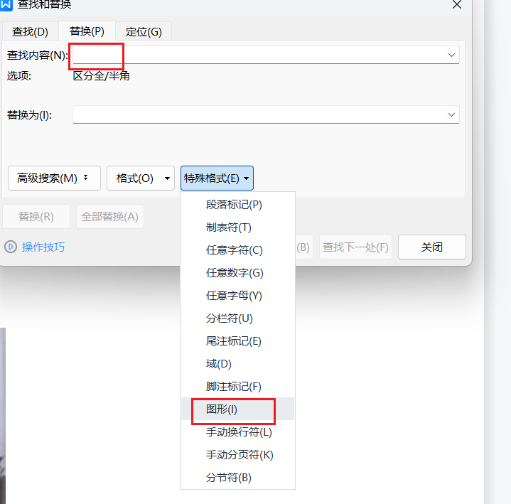 打开替换对话框,特殊格式选择图形