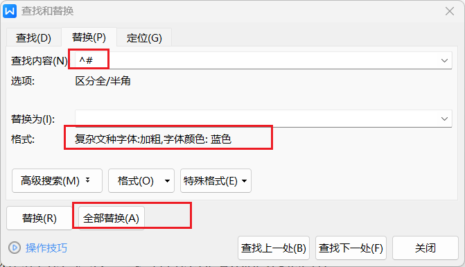 ctrl+H打开替换对话框
