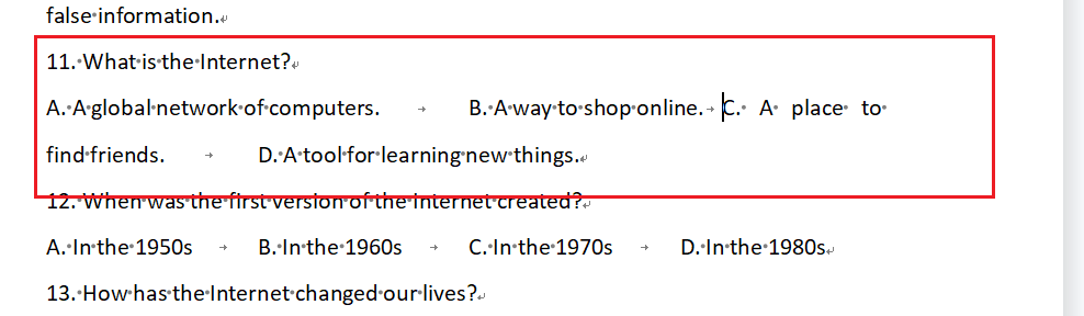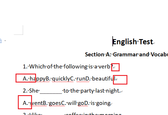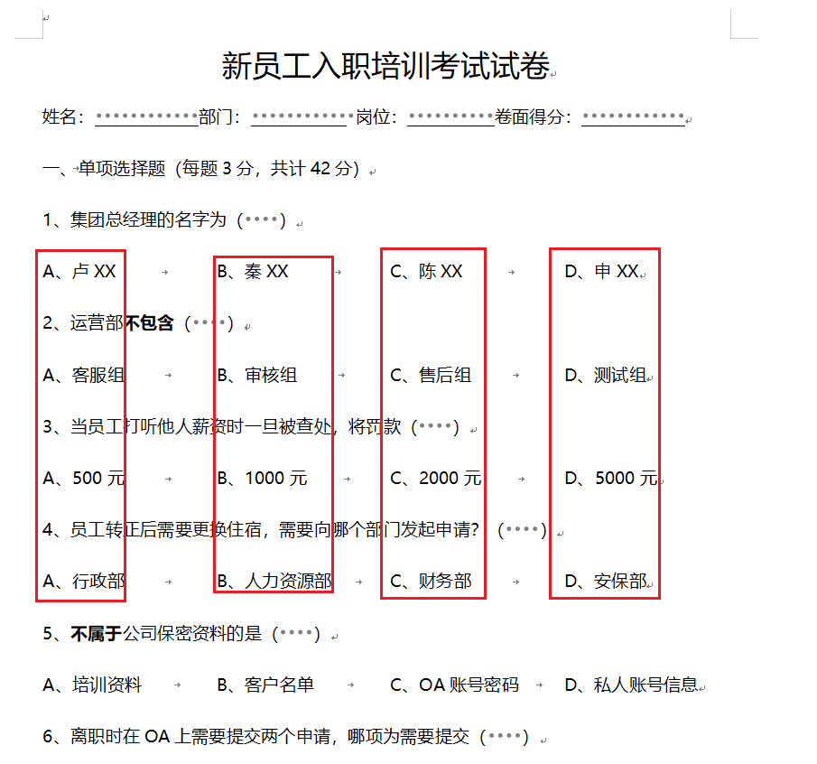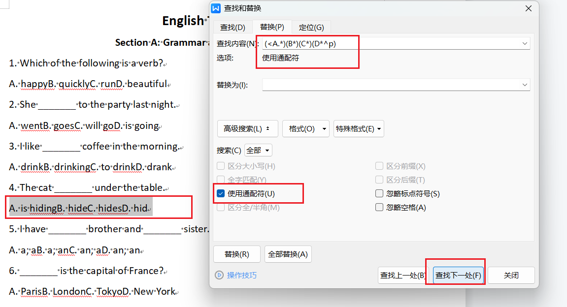 查找替换后的内容如下所示,但是有缺陷,如果选项内容出现了BCD字母查找会失效。