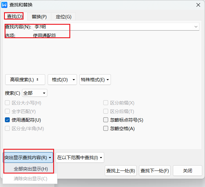 ctrl+F打开查找对话框