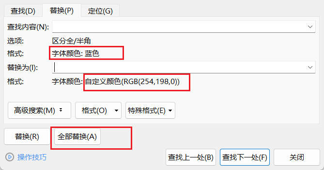 将文档蓝色文字修改为RGB值 254 198 0