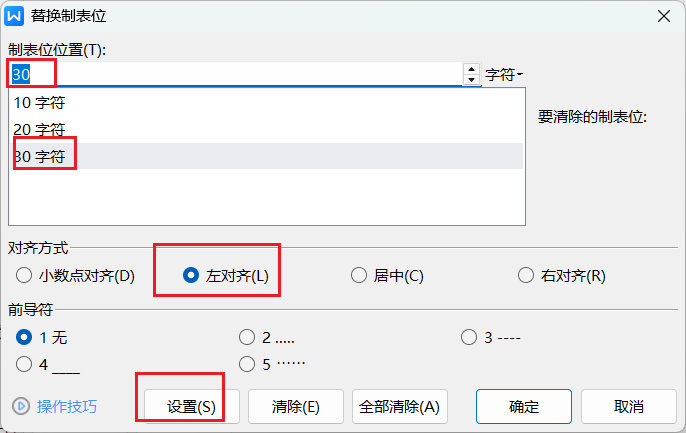 配置制表位的具体位置