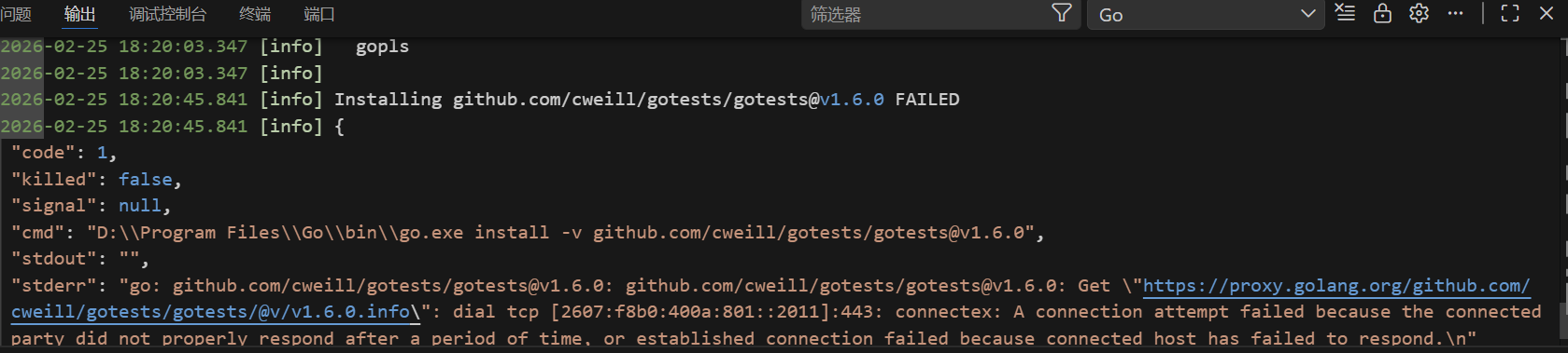 虽然前面终端配置了代理,但是通过VSCode安装工具默认还是会失败,