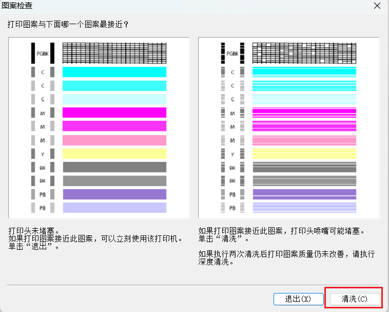 清洗 1 次 → 打印喷嘴检查