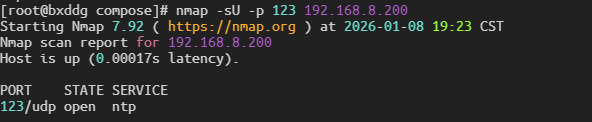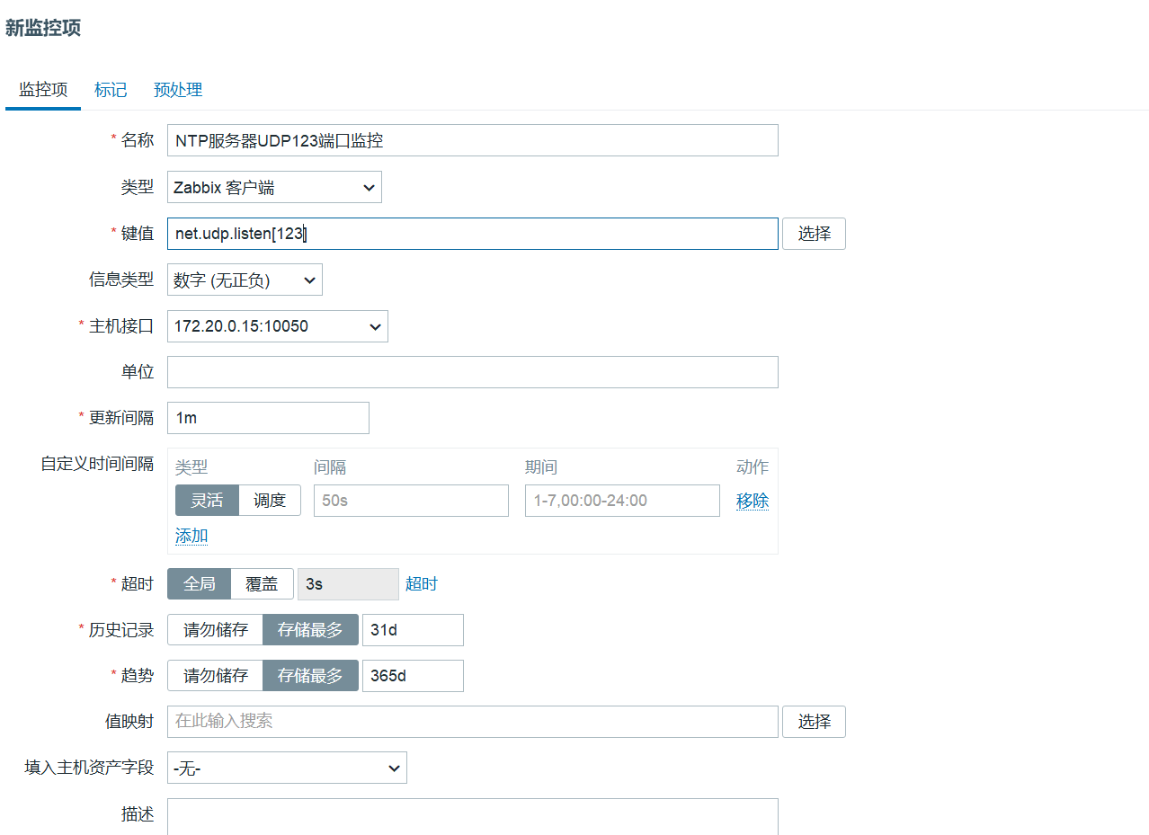 注意主机接口要是实际地址,不能是bridge地址,因此本机其的agent监控NTP服务是不可用的,其他主机用宿主机地址是可以的。
