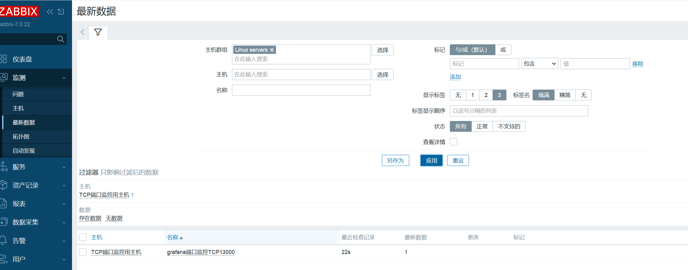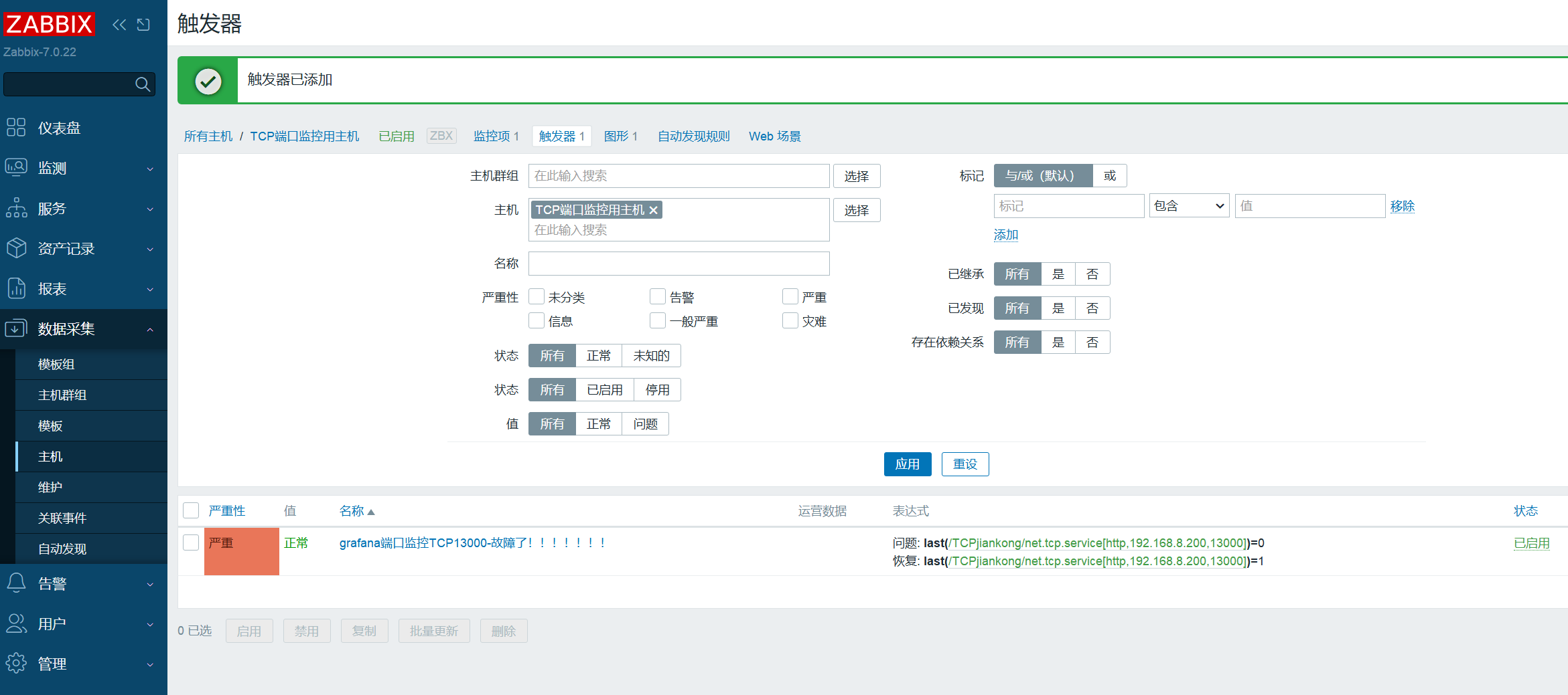 这是 Zabbix 官方、推荐、最稳定的 TCP 端口监控方式。