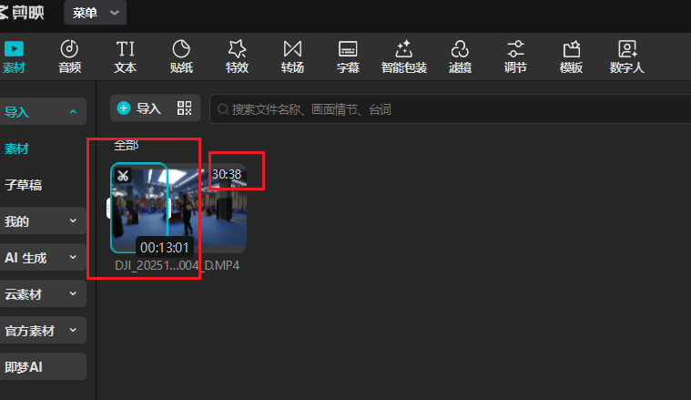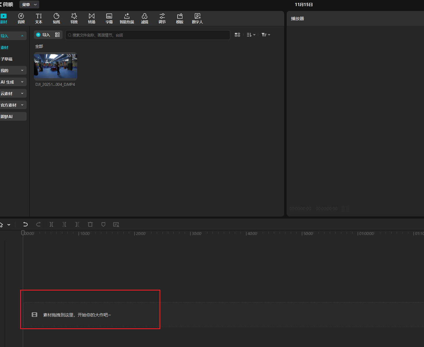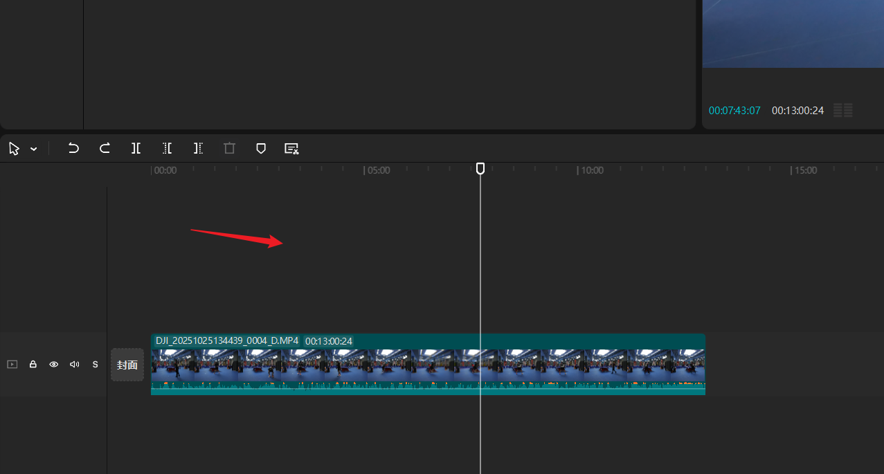 拖入时间轴,先 缩小时间轴(Ctrl + 滚轮)