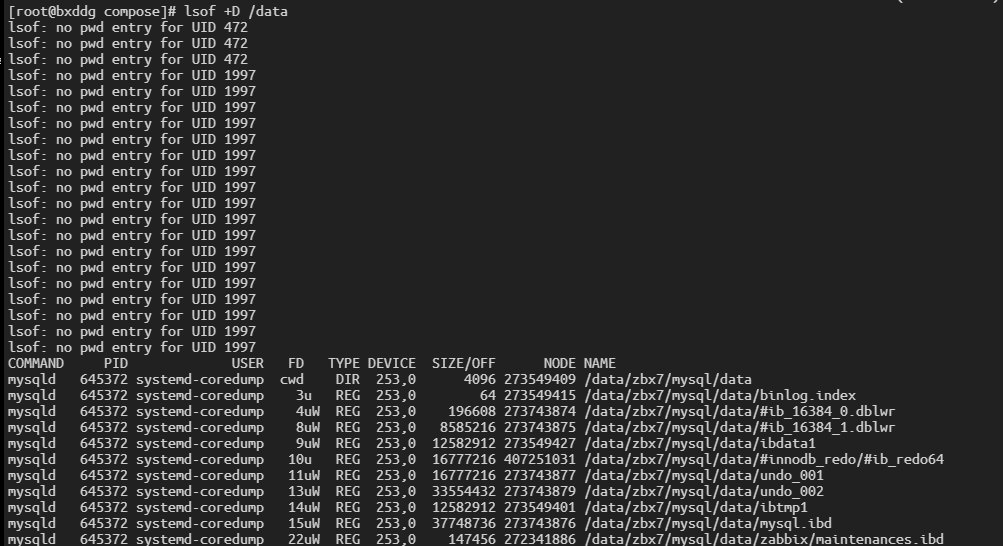 lsof +D /data输出示例: