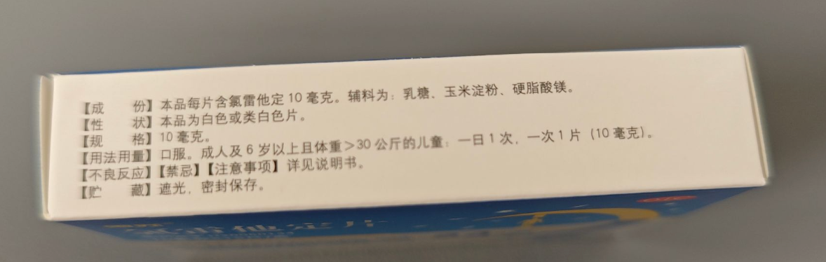 氯雷他定 = 不太困的抗过敏“日常通用药”,适合鼻炎、荨麻疹等过敏症状,一天一片,安全性较高。