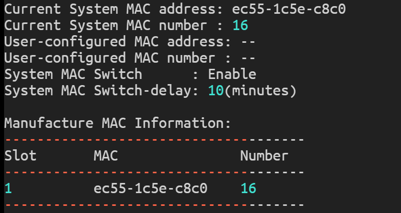 用于二层交换,可以发现所有物理接口的mac都是一样的。