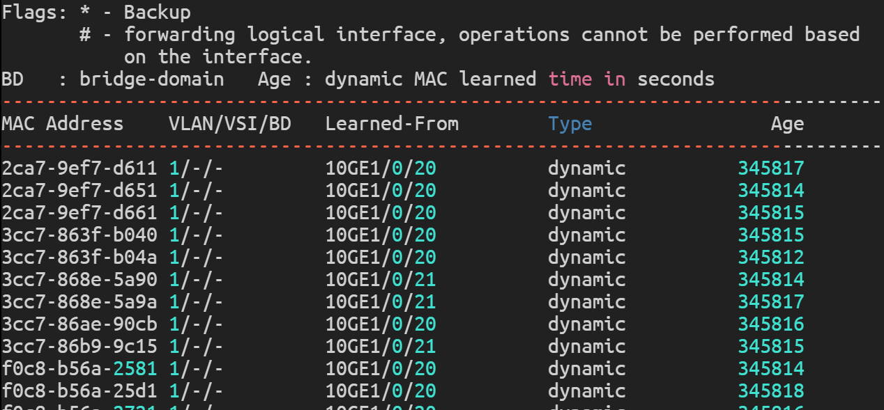 必须使用稳定且独立的 MAC,可以发现不同物理接口mac是一样的,都等于bridge,但是每个vlanif网关的mac是不一样的。