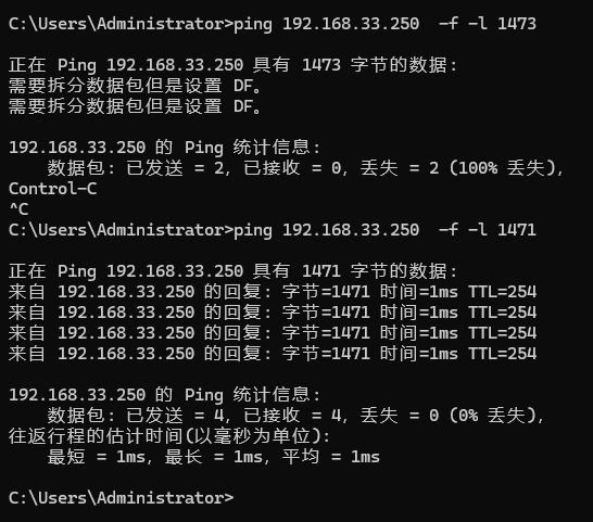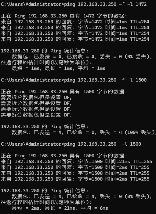 2. Windows 下测试 MTU(经典命令)