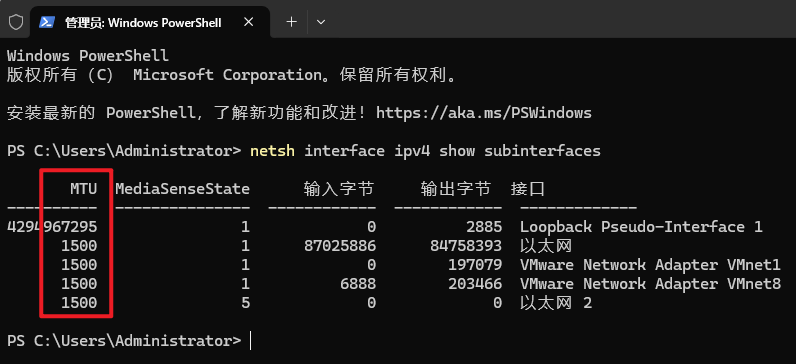netsh interface ipv4 set subinterface修改对 VPN/拨号连接会单独拉低 MTU