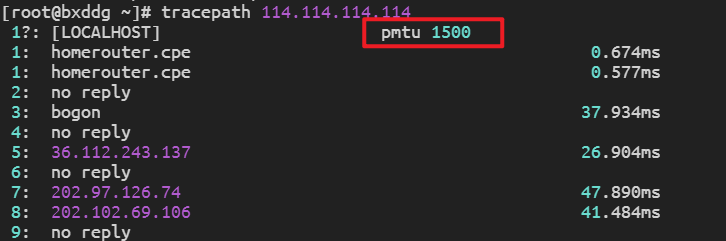 tracepath 10.1.1.1会自动探测 Path MTU 并显示每一跳的限制。