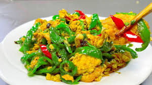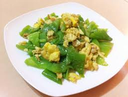 青椒翠绿、蛋香浓郁、油亮不腻、香气扑鼻。