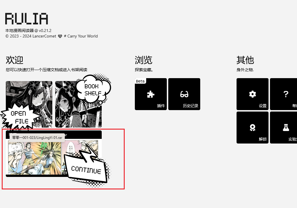 并且继续阅读功能也能基于压缩包,功能及其强大。即使你挪动了原始文件的位置,阅读记录还在!