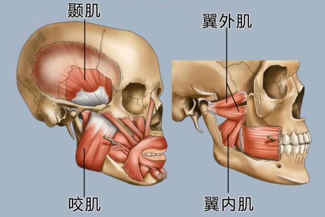 咀嚼肌(特别是咬肌、翼内肌):负责把食物嚼碎。