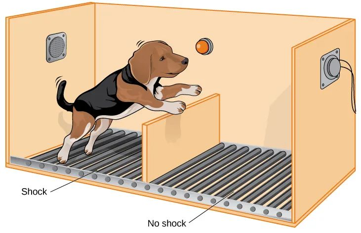 他把狗放进一个笼子,笼子里有两部分——一边有电击,另一边没有。
