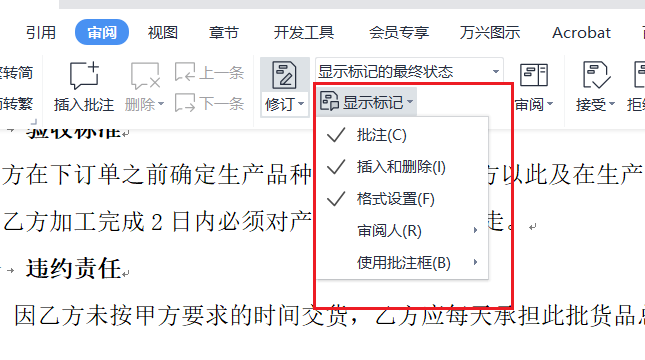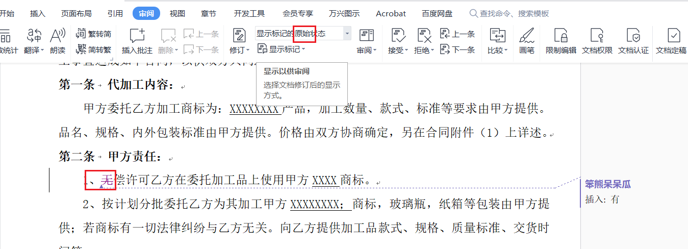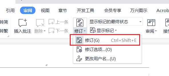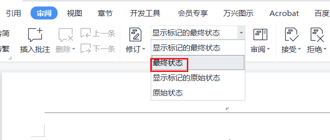 切换如下状态可以显示修改痕迹和隐藏修改痕迹,最终状态不显示修改痕迹