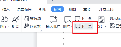 通过点击下一条批注按钮,可以切换到下一条批注意见