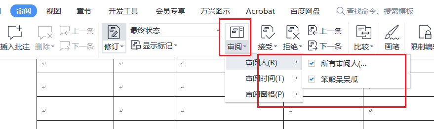 如果审阅人有多方,就会有非常多的修改意见,可以单独选择想看的审阅人的修改意见进行查看