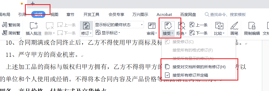 最后可以接受文档的所有修订