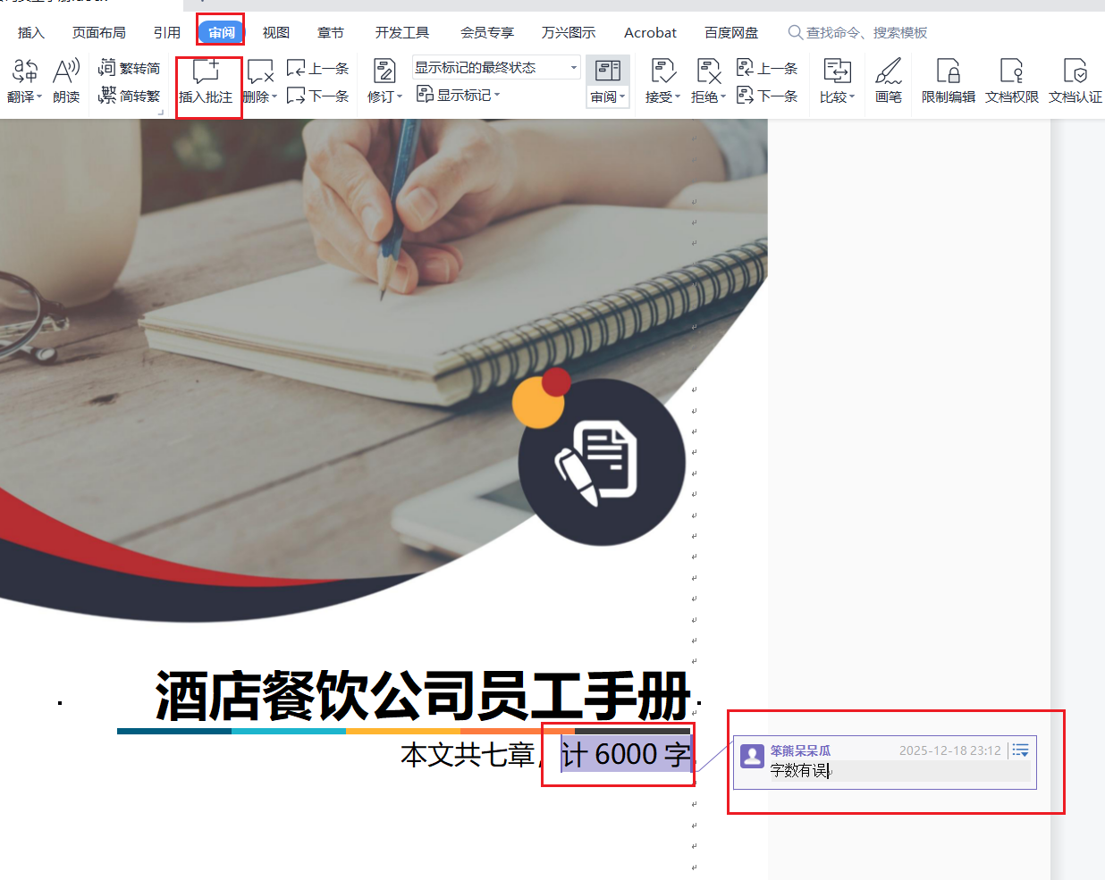 一、员工手册的审阅【批注-问答方式单方面修改】