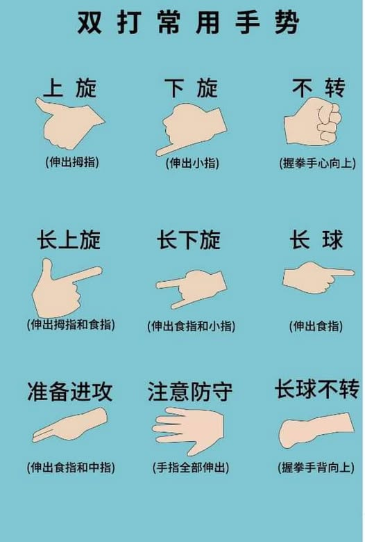 比赛前要和搭档统一手势含义,避免“你说下旋、我以为是不转”的误解。隐蔽性强