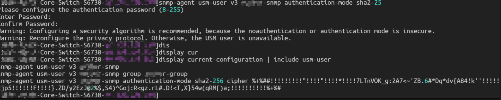snmp-agent usm-user v3 bxddg-snmp authentication-mode sha2-256