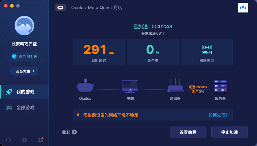 商店速度慢:uu加速quest设备的商店速度非常慢,或者进不去商店,你也可以在路由器里把ipv6关了试试,因为ipv6网络会不稳定。