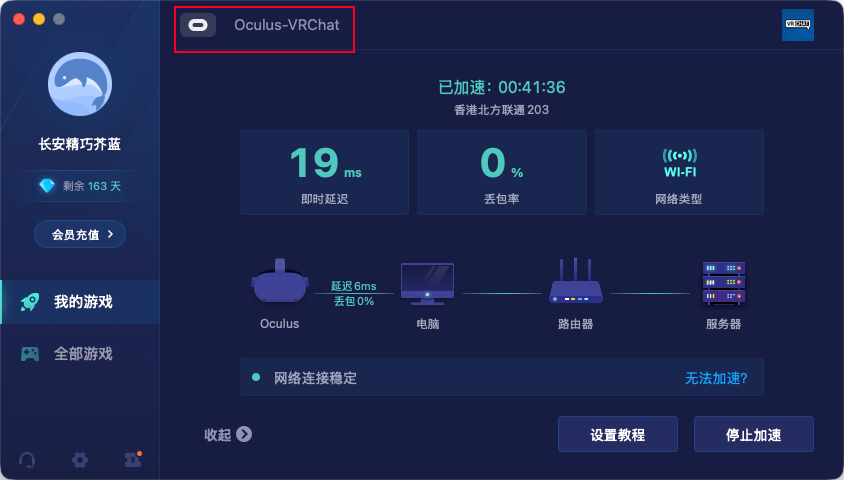 选择Oculus-VRChat,延迟如下所示