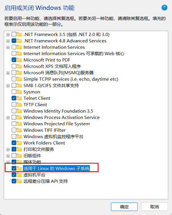 如果你的系统不支持 wsl --install ,可手动启用功能