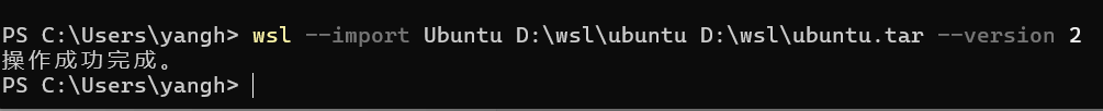 wsl --import Ubuntu D:\wsl\ubuntu D:\wsl\ubuntu.tar --version 2