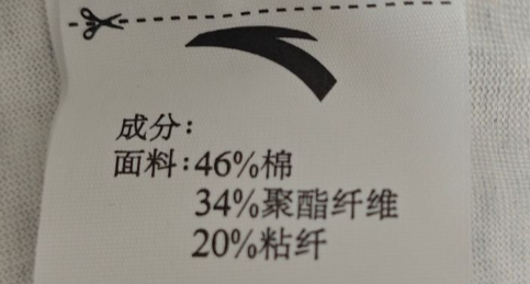 ④ 46%棉 + 34%聚酯纤维 + 20%粘纤