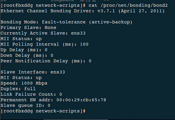 cat /proc/net/bonding/bond2如果是主备模式,正常输出会看到: