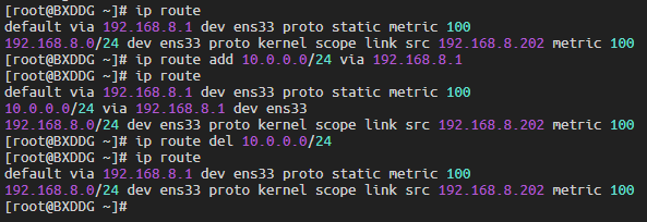 ip route add 10.0.0.0/24 via 192.168.8.1