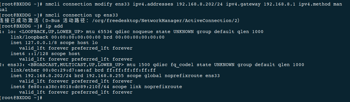 nmcli connection up ens33