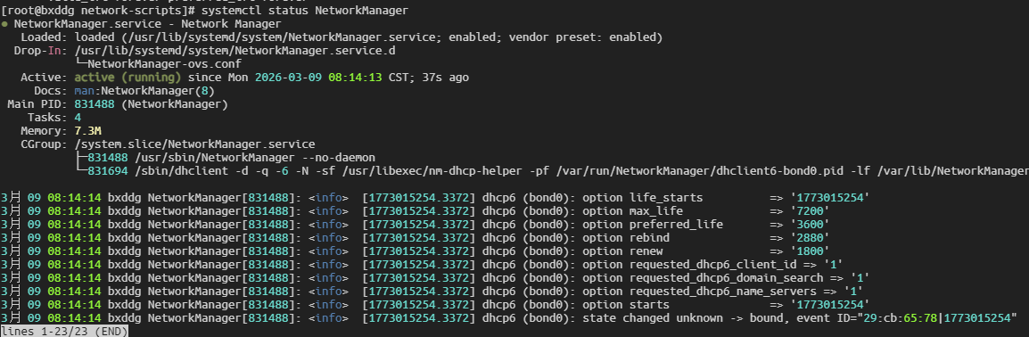 ip addr show bond2确认是否拿到了正确 IP。