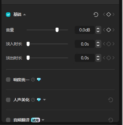 音量调节:点击音效片段 → 调整“音量”滑杆;