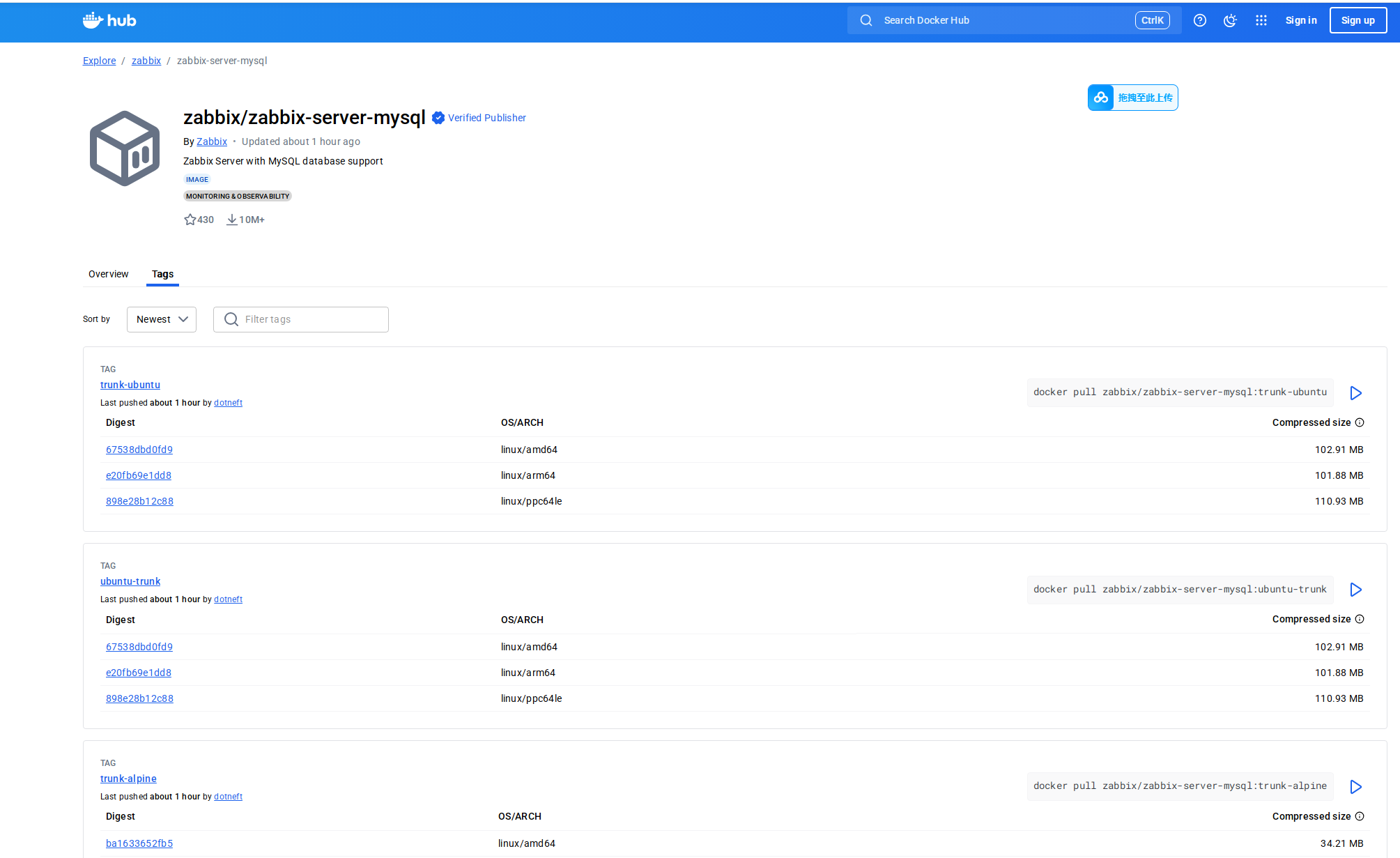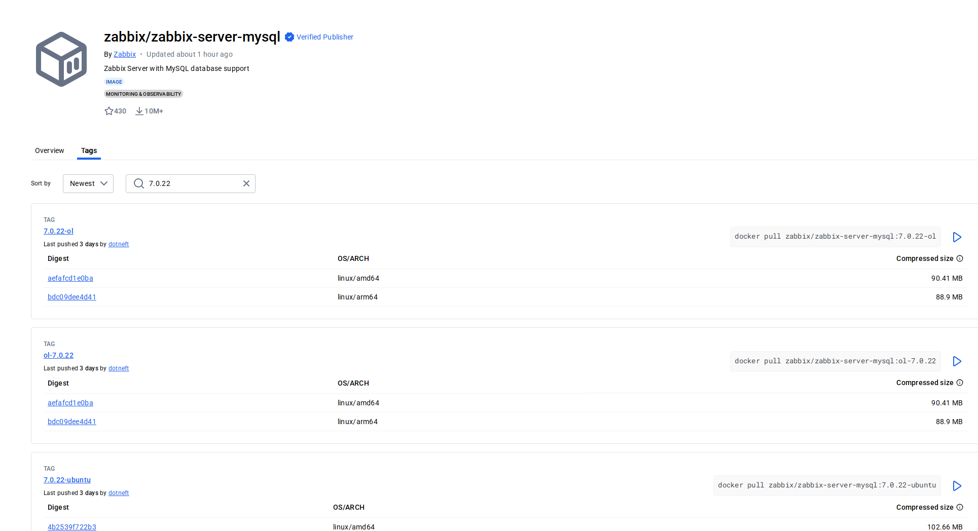 https://hub.docker.com/r/zabbix/zabbix-server-mysql/tags