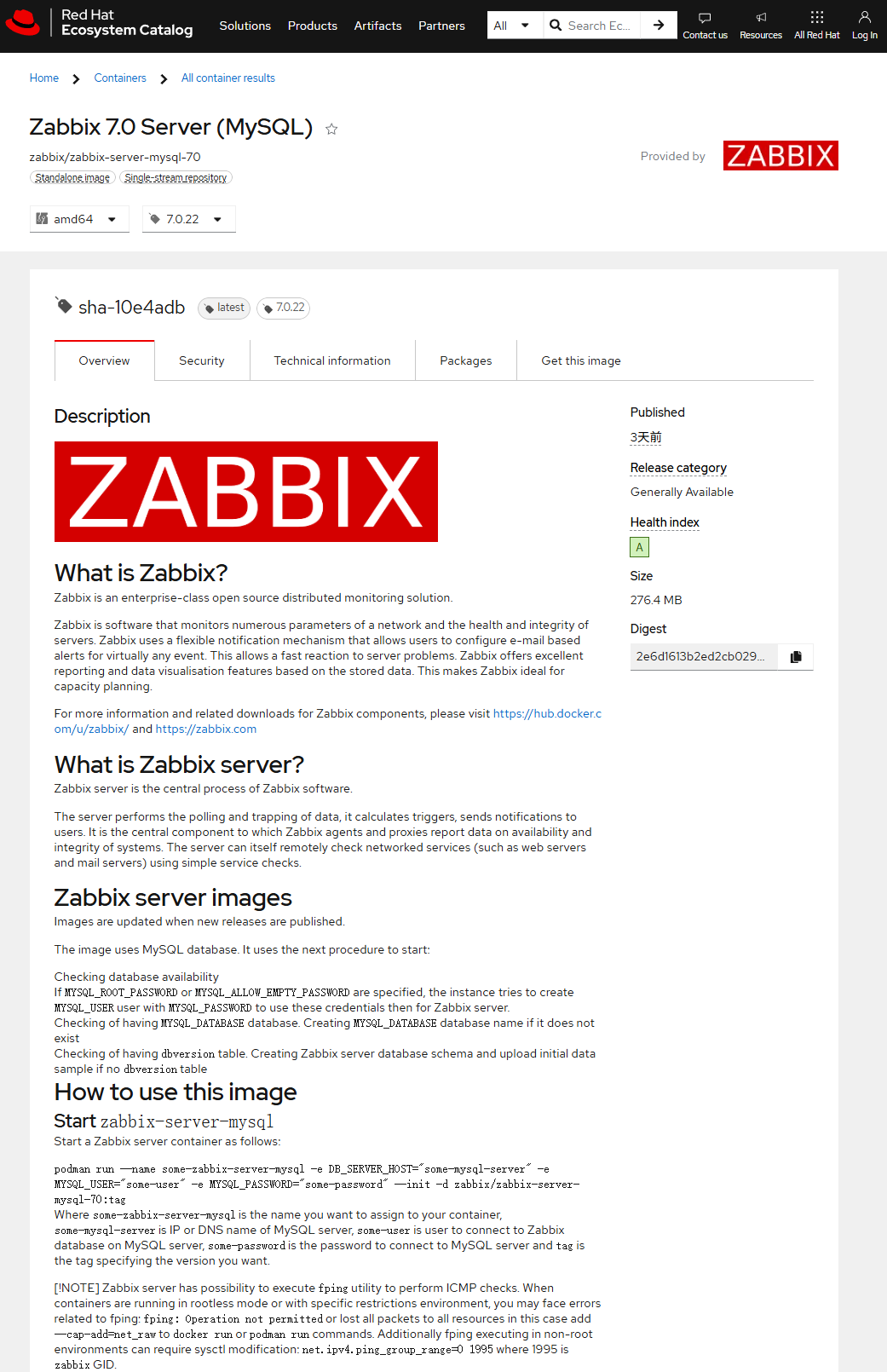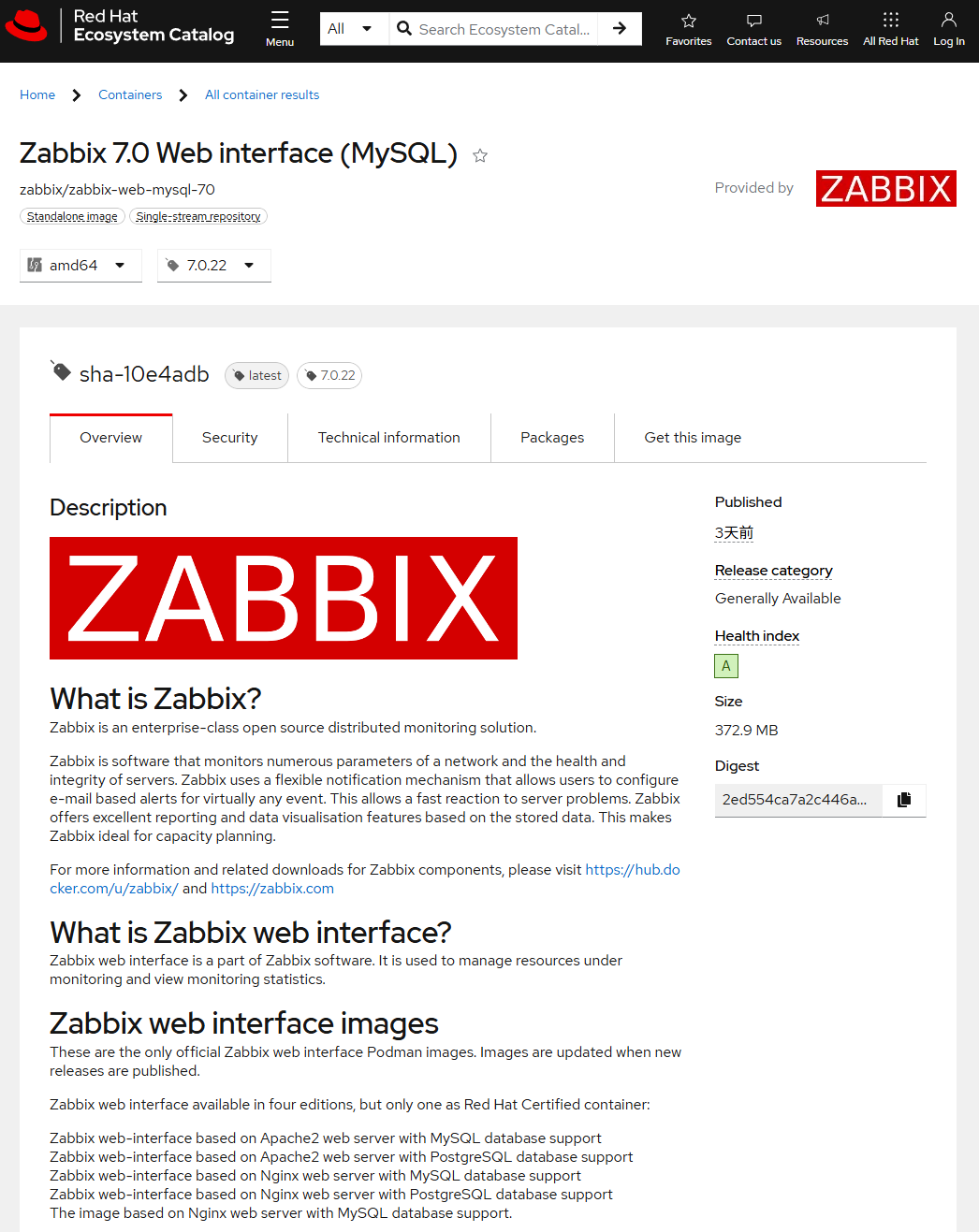 https://catalog.redhat.com/en/software/containers/zabbix/zabbix-web-mysql-70/6642545da4063260a3b7800a
