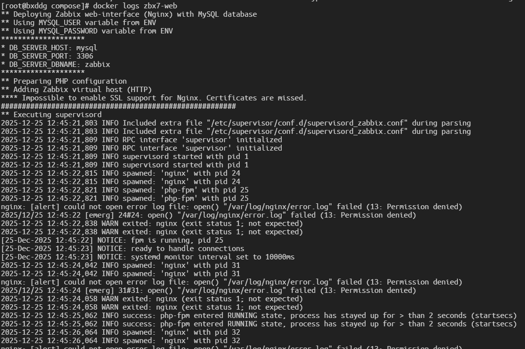 docker-compose up -d提权后重新compose 验证,登录页面如下所示,默认账号密码为Admin/zabbix