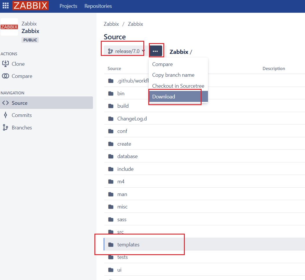 选择对应的zabbix的版本的分支选择模板进行下载